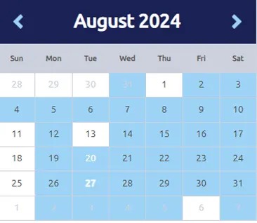 | MonMonday | TueTuesday | WedWednesday | ThuThursday | FriFriday | SatSaturday | SunSunday |